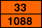 A lato il pannello arancione della sostanza acetale (105-57-7), un liquido molto infiammabile (33), il cui numero ONU è 1088.