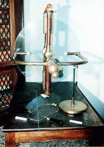 Appena entrato nell'anticamera che precede la biblioteca, il visitatore veniva accolto da un imponente esemplare di Macchina elettrica di Ramsden (un pezzo essenziale per ogni laboratorio di fisica dell'Ottocento) collocato sul lato sinistro della porta d'ingresso e, sul lato destro, da un modello di Macchina elettrica di Holtz (vedi foto), strumento questo con la stessa funzione di quello di Ramsden, ma più evoluto e potente.
