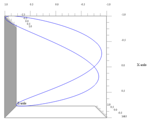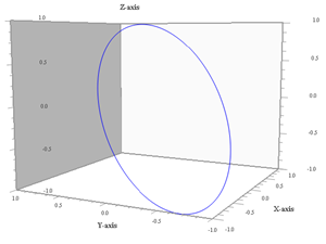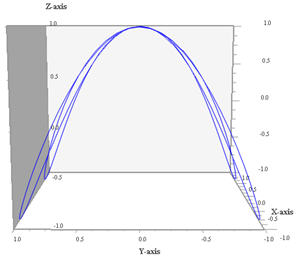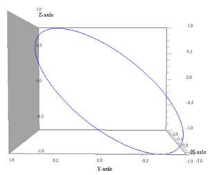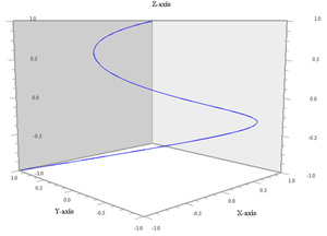 | Curva tridimensiuonale 1 ω1 = 1, ω2 = 1, ω3 = 1, φ2 = 45º |
