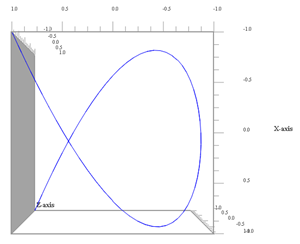Curiosità: una figura di Lissajous bidimensionale è considerabile come il frutto della proiezione ortogonale su di un piano di una curva tridimensionale. Infatti, osservando a una certa distanza il parallelepipedo che contiene la curva tridimensionale per esempio ortogonalmente a una faccia della superficie laterale, chiaramente si perde una dimensione e si ha una delle curve bidimensionali di Lissajous appartenenti alla famiglia del particolare rapporto tra le pulsazioni "superstiti". La stessa cosa accade osservando la curva perpendicolarmente a una delle basi del parallelepipedo di contenimento e chiaramente qui viene a perdersi il contributo della coordinata z.