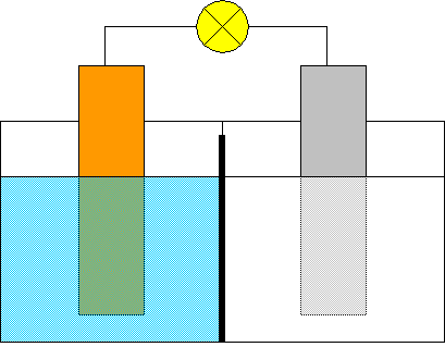 Al fine poi di assicurare la necessaria continuità elettrica tra i due metalli, si ricorre da un conduttore di rame (filo elettrico) e nei disegni il cerchio in giallo rappresenta una lampadina accesa (pila in funzione).