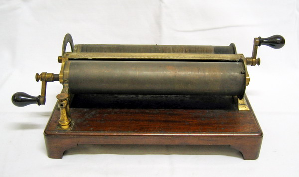 Nel dispositivo, opera di Enrico F. Jest (meccanico dell'università di Torino), viene modificata in modo opportuno la lunghezza elettrica di un filo conduttore di ottone (che si è spezzato). Uno dei cilindri è in legno con una scanalatura a elica che ospita una parte di un lungo (circa 40 m) filo d'ottone isolando tra loro le sue spire, mentre l'altro cilindro in ottone ospita l'altra porzione del filo conduttore e qui la corrente salta le spire perché non isolate. Evidentemente si incrementa la resistenza avvolgendo maggiormente il filo sul cilindro di legno, la si decrementa se lo si avvolge di più su quello di ottone.