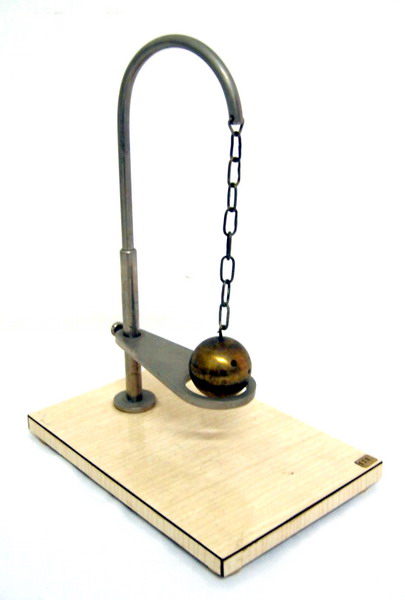 Un supporto metallico (qui d'acciaio) a forma di J sorregge, tramite un tratto di catena, una sfera piena d'ottone. Allo stante verticale del supporto a J è collegato, per mezzo di un sistema a scorrimento con vite a pressione di bloccaggio, un anello metallico. Il diametro dell'anello e appena sufficiente per far passare la sfera. Una base lignea o metallica sorregge infine il tutto.